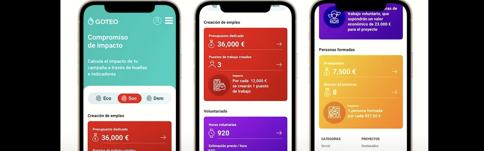 La Calculadora de Impacto Social nace como un esfuerzo interdisciplinario liderado por la fundación sin ánimo de lucro Platoniq (fundadora y principal promotora de la plataforma Goteo), con partners como Heres Social SCCL, Facto Cooperativa y Dimmons.net entre otras, en el que investigadores sociales y desarrolladores de software están trabajando juntos para mejorar la eficiencia y visibilidad de las campañas de crowdfunding en relación a su impacto social. Este enfoque para calcular y visualizar el impacto social, como una prueba de concepto, se basa en un marco metodológico inspirado en avances previos en los sectores sin ánimo de lucro y responsabilidad social, integrando tanto datos generados por usuarios como fuentes y indicadores de datos externos. Como una primera implementación en Goteo, integrará una calculadora virtual incorporada en la interfaz de diseño de campañas que permitirá a sus promotores estimar mejor su impacto monetario y no monetario en relación al valor social, la devolución de inversión pública y otros conceptos relacionados. Los resultados de esta calculadora de campañas social, que traduce diferentes variables de valor en cálculos de impacto social, también serán visibles para todos los usuarios y usuarias de Goteo como donantes potenciales de campañas. AL mismo tiempo, funcionará en conexión con los indicadores de los Objetivos de Desarrollo Sostenible (ODS) previamente desarrollados y el impacto de las huellas sociales, democráticas y ecológicas de Goteo.