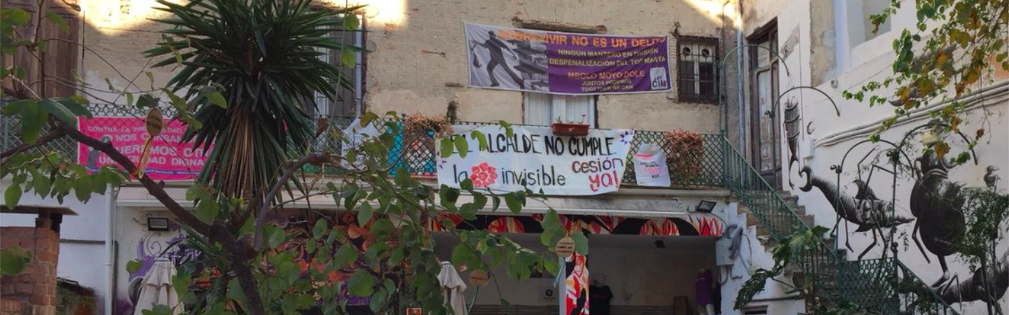 Dani (La Invisible): Claro que sí! Pues la Casa Invisible es un centro social y cultural de autogestión ciudadana que lleva 14 años en Málaga. El proyecto se inicia con la ocupación de un edificio en el centro histórico de la ciudad por parte de un conjunto de colectivos de creación cultural. A partir de entonces empieza un proceso de negociación con el ayuntamiento, mientras se van realizando actividades no sólo culturales sino de índole social. Colectivos de migrantes, feministas, precarias... se organizan dentro de ese espacio y encuentran en él un lugar donde desarrollar sus actividades. Así, La Casa Invisible, va ganando relevancia en la vida de la ciudad, hasta el punto en que el ayuntamiento se compromete a negociar una cesión de uso del espacio. Sin embargo, la institución empieza a "cortocircuitear" la negociación y tratar de desahuciar el proyecto, con excusas técnicas, que en el fondo siempre son políticas... hasta el punto que se generan movilizaciones ciudadanas importantes, con tal de defender el centro, que consiguen detener el lanzamiento y reromar el compromiso del ayuntamiento de de apoyar el proyecto. Sin embargo, al poco tiempo, vuelven a desaparecer de la negociación.