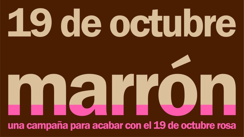 Faltan seis semanas para otro octubre rosa y como las marcas ya estarán preparando sus campañas (alguna ya ha lanzado su anuncio en televisión), nosotras, impulsadas por Nuria Perea (enferma de cáncer de mama metastásico) y Violeta Assiego (paciente de cáncer de mama), también vamos a arrancar ya. Con un crowdfunding, más seguridad que nunca después del efecto de Think before you pink y de haber tumbado la lona de Dorsia en menos de 48 horas, y una idea fija: transformar radicalmente el 19 de octubre. ¿Cómo? Si un clavo saca otro clavo, creando un nuevo 19 de octubre. El 19 de octubre marrón. ¿Cómo? Juntas. Cómo, si no. Un monstruo tan grande y tan rentable y tan goloso sólo lo batimos haciendo piña.