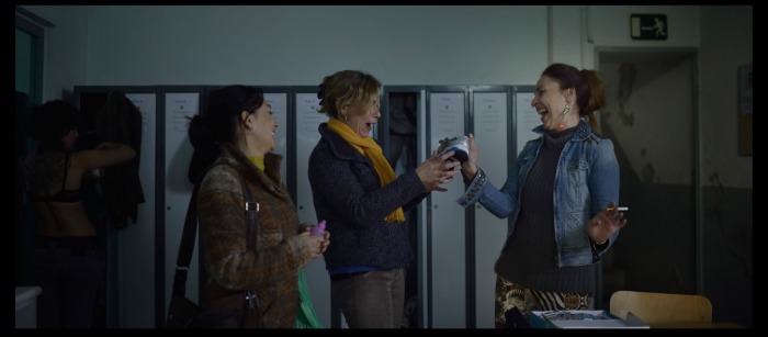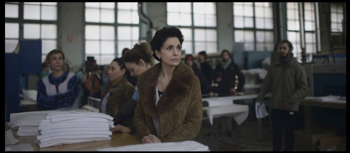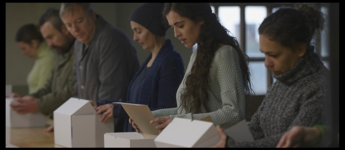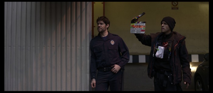 A pesar de las caras de sueño y de que ni siquiera había amanecido, al poco ya estaba todo el mundo preparado para grabar la primera secuencia, en la que Sílvia Pérez Cruz (Sonia, en la ficción) hacía una prueba para conseguir trabajo en un almacén de cajas de cartón cuando de repente tenía que atender la llamada del banco.