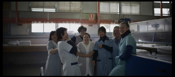 Después de Sílvia, le tocó el turno a su madre en la ficción, Adriana Ozores, que interpreta el papel de Mercedes, una trabajadora de una lavandería industrial. Así que aquí la tenéis, rodeada de manteles y servilletas, soportando estoicamente el frío. Los actores se tenían que tapar entre secuencia y secuencia, ¡estábamos a un grado de temperatura!