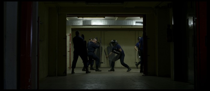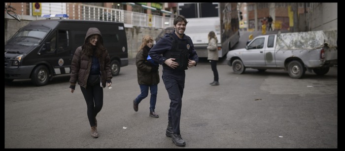 Esta semana han pasado muchas más cosas. El miércoles, por ejemplo, comenzamos el día antes del alba. A las 7.30 de la mañana ya teníamos a los actores maquillados y vestidos listos para empezar. Ese día rodamos las escenas que transcurren en un gimnasio de la policía. Jaime, interpretado por el actor Ivan Benet, tiene bastantes remordimientos de conciencia después de haber asistido a varios desahucios. Sus compañeros le dicen que no se preocupe, que es lo que dice la ley, que es su trabajo, que los asistentes sociales se hacen cargo de esas familias, pero a él esas explicaciones no le acaban de convencer. Le asedian sus contradicciones internas y en la sesión de entreno… acaba estallando. Menos mal que Lucía, su compañera (interpretada por la actriz Montse Morillo) está ahí para echarle un cable.