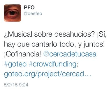 “No puedo poner más, pero quiero contribuir”, nos dijo María, una mujer de 70 años, pensionista, al tiempo que nos daba un billete de 10 euros. Como ella, muchas otras personas se están poniendo en contacto con nosotros para colaborar. Hay quienes se ofrecen para participar en la película, quienes nos echan un cable promocionando la película, otros que nos quieren ayudar a traducirla. ¡Es realmente emocionante! A través de facebook y de esta página de Goteo estamos recibiendo unos mensajes preciosos y no podíamos dejar pasar ni un día más sin deciros ¡gracias! Vosotros sois una parte muy importante de este proyecto.