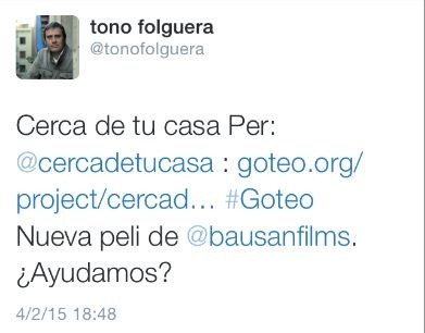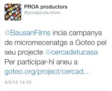 Estamos recibiendo muchos apoyos de la industria cinematográfica, como por ejemplo de @tonofolguera, presidente de Prodocs (Asociación de Productores de Documental) y de @proaproductors (Productores Audiovisuales Federados).