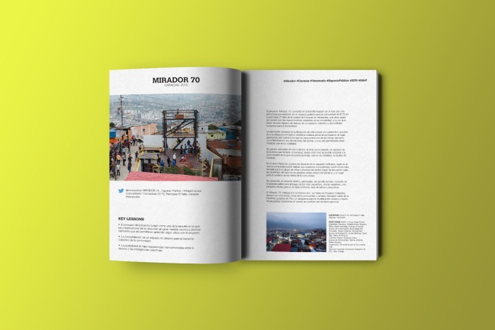 See details of the interior of the book CIVIC PRACTICES, featuring the project Mirador 70 in Caracas, Venezuela.