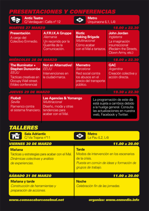 Consulta el programa en nuestra web: http://comoacabarconelmal.net/programa/