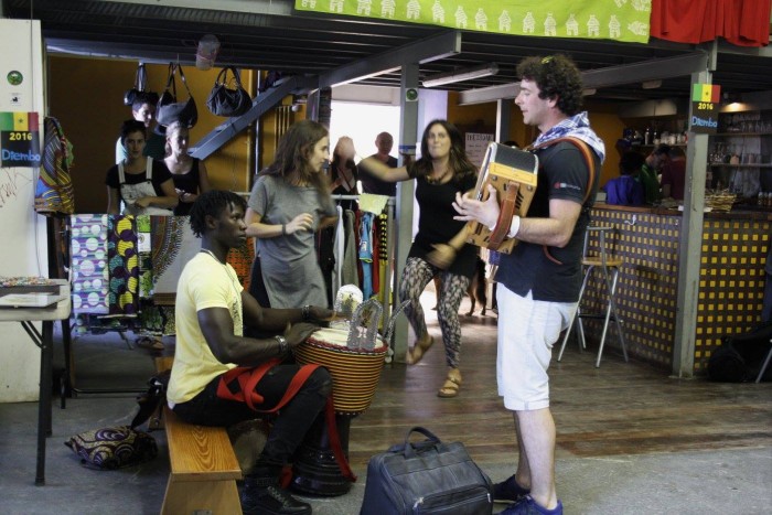 Caída la noche, la actividad musical se trasladó al interior del recinto, después de la tómbola y de la proyección del vídeo de Kassoumay que podéis ver en esta misma plataforma. Este último fue un momento muy emocionante para las tres enfermeras a las que apoyamos con nuestro festival, quienes por cierto no pararon de trabajar, duro y toda la jornada.