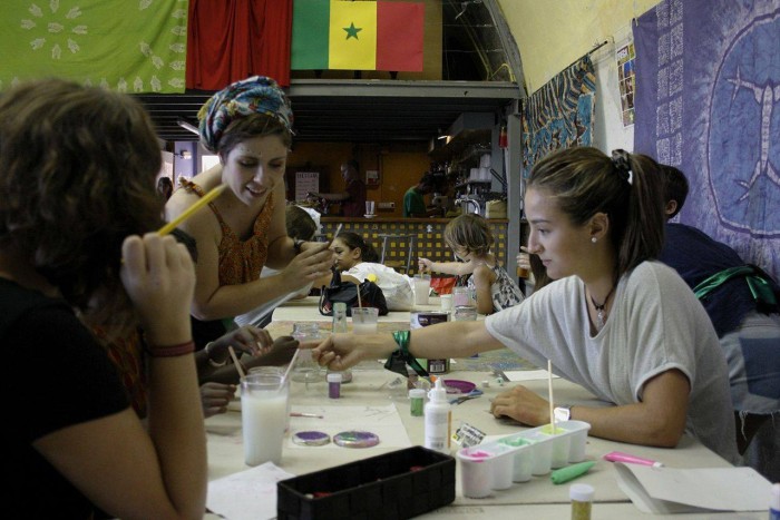 Las actividades para los más txikis en nuestro festival solidario anual tienen un nombre: Zozoa (www.zozoa.net), o, lo que es lo mismo, nuestra insustituible compañera Eider Elorza. Eider es miembro de GenteQueHaceCosas desde el año pasado, cuando llevó a cabo talleres de pintacaras, manualidades y cuenta-cuentos con los más pequeños en Guardetxe, que repitió este año. Zozoa convierte Djembering en un festival para toda la familia. Una labor que no sería posible sin su equipo de voluntarias: Olatz, Paula, Lucía, Sonia y Clara.