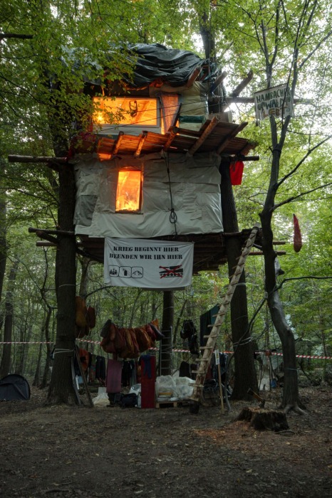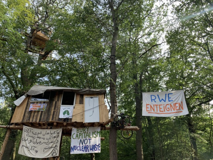 Des de l'any 2012, desenes d'ecologistes han ocupat el bosc per impedir aquesta tala. Hi han instal·lat una vuitantena de cases-arbre i nombroses barricades, aquestes per evitar que la companyia minera i els vehicles policials puguin entrar al bosc. La defensa del bosc de Hambach s'ha convertit en l'emblema de la lluita pel clima a Alemanya.