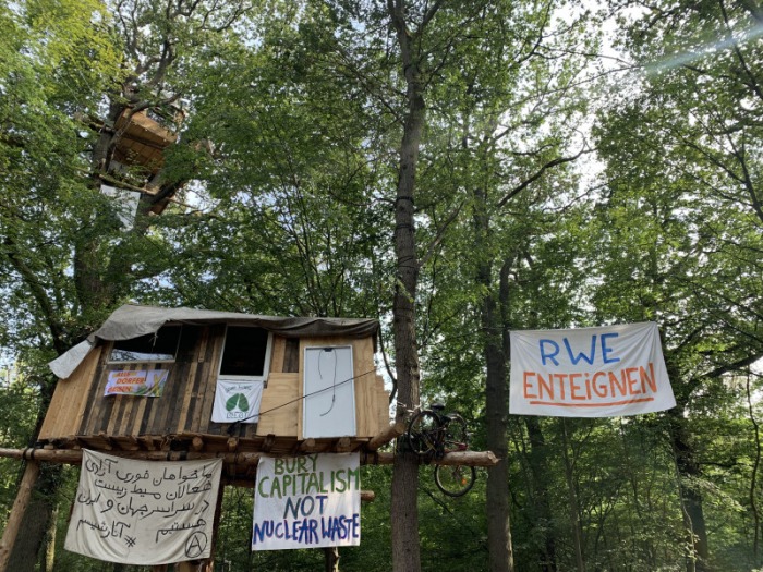 Desde 2012, decenas de ecologistas han ocupado el bosque para impedir esta tala. Han instalado una ochentena de casas-árbol y numerosas barricadas, estas para evitar que la compañía minera y los vehículos policiales puedan acceder al interior del bosque. La defensa del bosque de Hambach se ha convertido en el emblema de la lucha por el clima en Alemania.