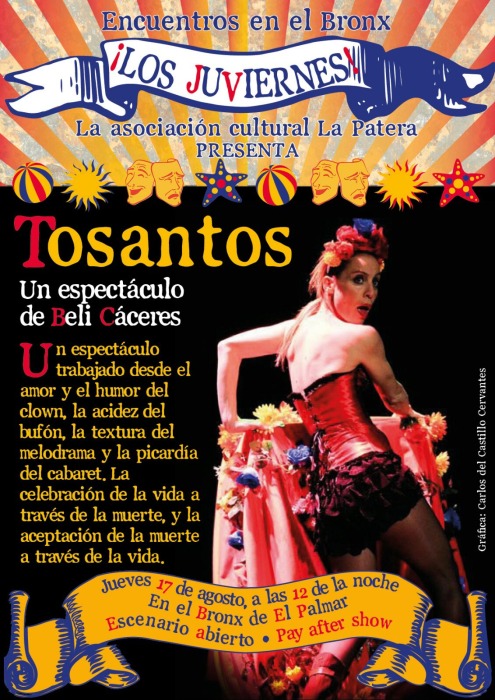Nos gustaría corresponderles animándoos a descubrir el Bronx y su cuidada labor de fomento y disfrute de las artes escénicas, así como a que contratéis a Beli Cáceres y su espectáculo "Tosantos", todo un prodigio de cariño y buen humor, no exento de cargas de profundidad contra convenciones sociales retrógradas.