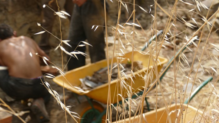 El Rumba Club es un proyecto que ya a día de hoy es una realidad. Desde hace meses empezamos con los trabajos de desescombro de la ruina y acondicionado de los caminos que acceden a ella. Estos trabajos son esenciales para poder ver el estado de los muros y así poder terminar de diseñar el plan de obra y rematar el diseño final de la casa. El arreglo del camino lo necesitamos para poder recibir los materiales de construcción cuando estos empiecen a llegar. También nos hemos estado moviendo para conseguir materiales económicos y cercanos, en nuestra búsqueda encontramos una partida de losa de pizarra para cubrir el tejado y ahora estamos transportándola hasta Matavenero y bajándola hasta el pueblo que no es tarea fácil.