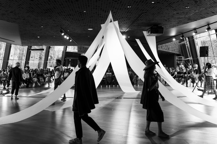 El evento comenzó con la presentación de Haritz Alberdi, Alcalde de Getaria, Ion Irurzun, de la Fundación Elkano 500 y Oihane Pardo, fundadora de Amarenak, que dieron paso a la performance. La escenografía creada por En Clave de Sol simbolizaba las velas de los navíos, entre las que caminaron los modelos acompañados de la música que preparó Dantz.