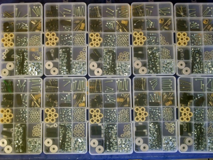 I like to use these little boxes, they are convenient to check that you have everything, and make the assembly way quicker by avoiding to have to look in a pile of plastic bags for the parts.
