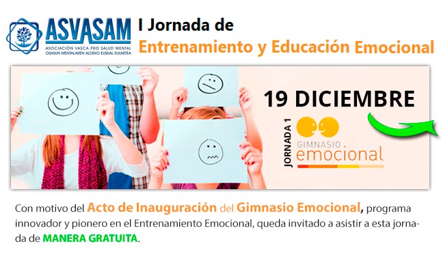 Con motivo de la inauguración del GIMNASIO EMOCIONAL, celebramos la "I Jornada GRATUITA de Entrenamiento y Educación Emocional", que tendrá lugar en el CRAI (Biblioteca Universitaria de Deusto), el jueves 19 de diciembre a las 18:00h.