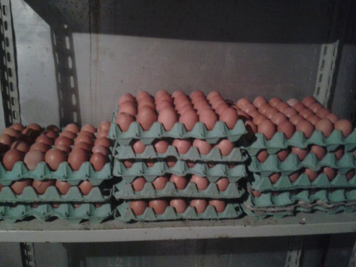 Empezamos con dos huevos y ahora la despensa de la cocina está así. Hay suficientes huevos como para no tener que comprar ya nunca, el autoabastecimiento está completado con las gallinas que tenemos. Tenemos huevos, los niños aprenden, todos los residuos orgánicos de la cocina tienen ahora su fin. También hay que decir que se completa la alimentación de la gallinas se enriquece con cereales.