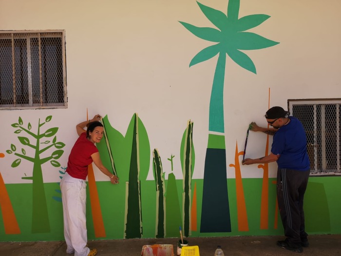 El Proyecto Bosque de Color incluye la mejora y pintado de las fachadas. La mejora se ha llevado a cabo por parte del ayuntamiento. Para la temática del diseño se han tenido en cuenta las especiales características del colegio, el bosque de pinos con que cuenta y el proyecto del Bosque de las Mil Manos que se lleva a cabo desde hace años a través de la AMPA. Después de hablar con diferentes artistas y solicitar presupuestos que se ajustaran al presupuesto disponible a través del Crowdfunding, se eligió a la artista Noemí Calvo para desarrollar esta intervención.