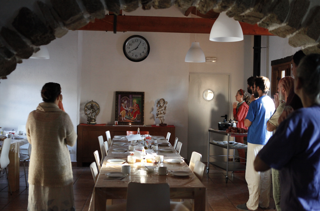 Además, hemos limpiado todo el entorno, hemos cavado una gran zanja para la próxima instalación de las placas solares, hemos hecho una gran mudanza desde l'Ametlla del Vallès y reacomodado todo a este nuevo espacio sagrado. También compartimos las comidas en silencio y preciosos espacios de meditación y silencio.