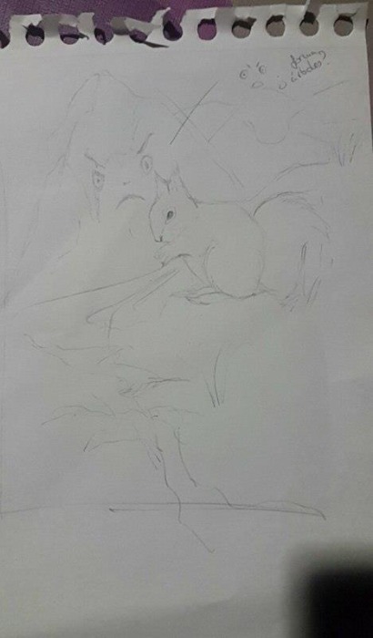 Os dejamos unas fotos de uno de los bocetos que está realizando (que distan mucho del resultado final pero ya apunta cosas muy lindas), y otra de nuestro corrector y compañero, Fran Dorado, que lo pillamos con las manos en la masa corrigiendo uno de los cuentos.