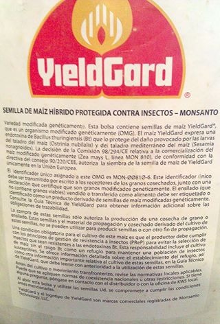Eso sí, con toda una guía en la etiqueta de como usarlo (adjunto) , que especifica que sólo se puede plantar una vez y que no se pueden guardar semillas (esto es debido a la propiedad intelectual del laboratorio al haber creado la semilla ) que por supuesto nadie va a leer, sobretodo porque el vendedor se las dará por gramos en una bolsita de plástico como si le vendiera 100 gramos de pimienta, cuando lo que está haciendo es venderle la muerte personificada, no sólo para él, sino para nuestro entorno y para la herencia genética de nuestras semillas de maíz tradicionales.
