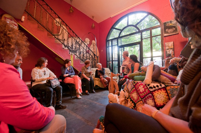 Participants in the meeting that we'll organize during the campaign, aimed to knit a beautiful dress to yarn bomb some hideous sculpture in Cáceres.