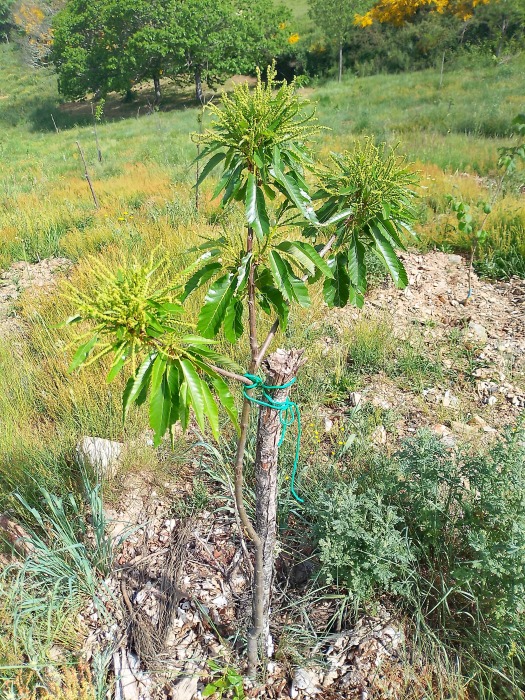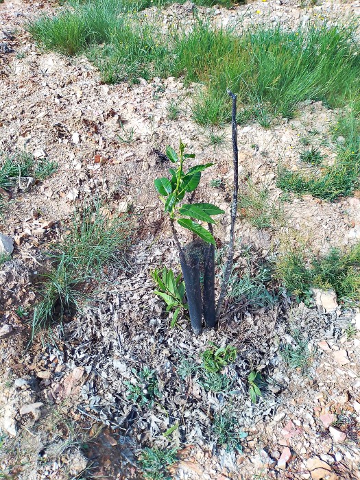 Agora que comeza a florecer as árbores e antes de meternos coa rega, que é matadora, cómpre botar unha ollada atrás (ao feito) e á adiante (o que queda por facer). Ao primeiro, todo ten pinta de que este ano apañaremos as primeiras castañas dos primeiros castiñeiros que plantamos na Leira A Montán, o inverno anterior a este crowdfunding. Foran unhas 30 árbores na leira familiar. Despois xa veu a ampliación e os 300 plantados co voso apoio, ademais das 30 abeleiras e os 30 pistacheiros.