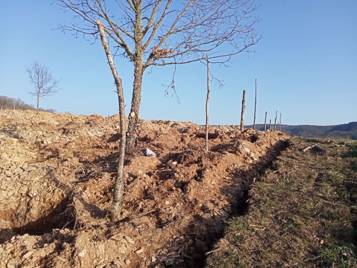 Se nos seguides nas redes sociais veríades que non tivemos moito acougo durante este inverno, para preparar as leiras. A boa nova é que por fin imos PLANTAR na segunda quincena deste mes de febreiro. Nestes intres están xa feitos os buratos de plantación (tras desbrozar, retirado de troncos, esmiuzado da maleza, arado e reparto de cal magnésica). Toca botar algo de esterco de fondo e, se hai sorte e chove estes días, iso que vai quedando na terra. Senón, estas xeadas van ben para curar e que vai esponxando e aireando.
