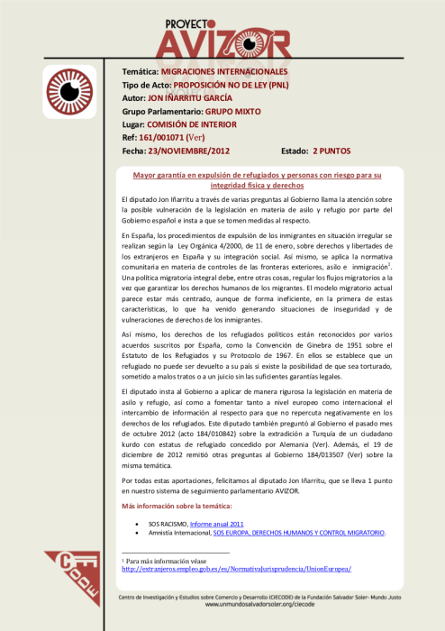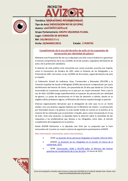 Si queréis saber qué han hecho y dicho nuestros diputad@s en los últimos meses sobre este tema, os dejamos algunas "fichas avizor".