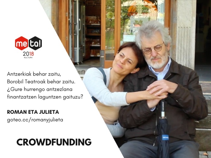 Eskerrak ere, modu altruistan ekarpen bat eginez, Roman y Julieta proiektua eta antzerkia babestu dutenei. Meta Kulturako ekimen honen bidez, kulturaren alorrak eta, bereziki antzerki ikuskizunek duten babes eta finantzaketa faltak salatu edo aldarrikatu nahi ditugu, are gehiago, gutxiengo hizkintza den Euskeraz sortutako proiektuek.