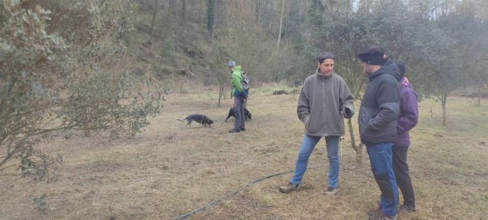 Seremos un grupo de ocho personas máximo. Buscaremos trufas con perros truferos y las podrás probar en un buen almuerzo. Será en el Mas la Datzira un domingo. De enero a febrero de 2025. Te acompañará Núria Padrisa.