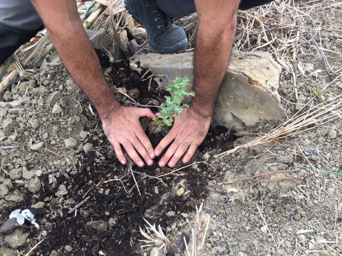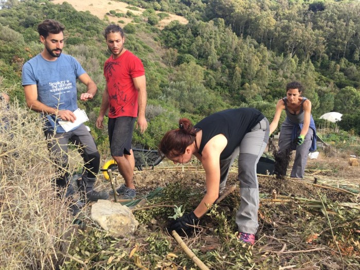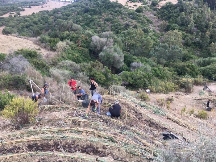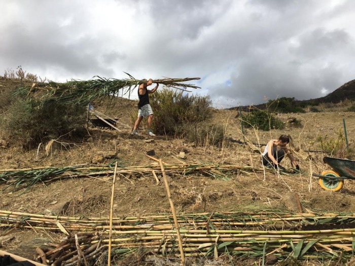 Como habíamos anunciado, el pasado 25 de octubre se inició el primer campamento de trabajo del proyecto. Después de mucha preparación, por fin pudimos comenzar con los trabajos de REGENERACIÓN. Gracias al asesoramiento de nuestros sabios compañeros Silvano, Marcus (Tamera, Portugal), Aude y Andrew (Catalina, Cádiz), decidimos enfocar esta primera fase en la retención del suelo y su regeneración. Las labores principales que hemos realizado han sido el diseño de las zonas y los accesos, construcción de escaleras, colocación de biorrollos (fajas de cañas que retienen el agua y el suelo, siguiendo la curva de nivel del terreno), también hemos aportado mucha materia orgánica y estiércol, por último hemos dispersado incontables semillas y trasplantado 115 árboles y arbustos.