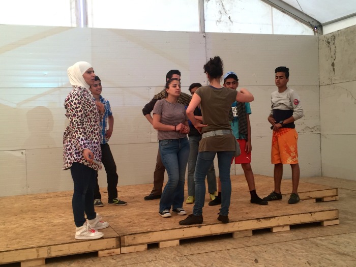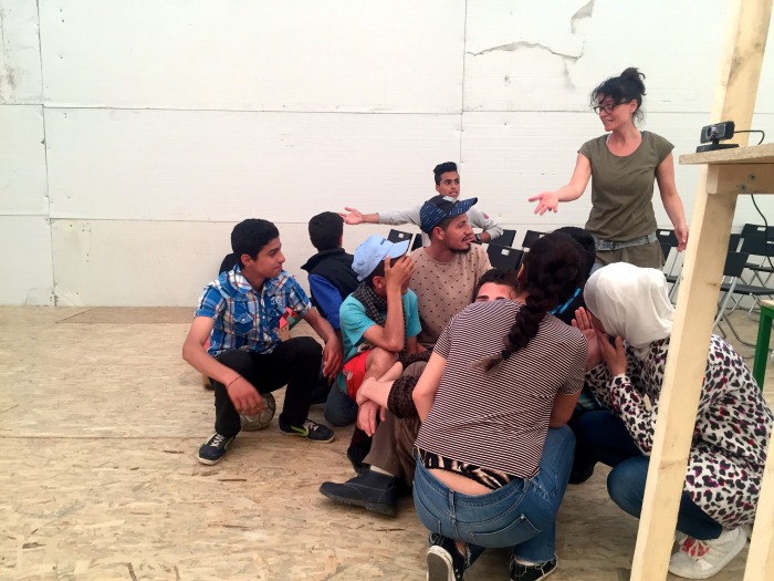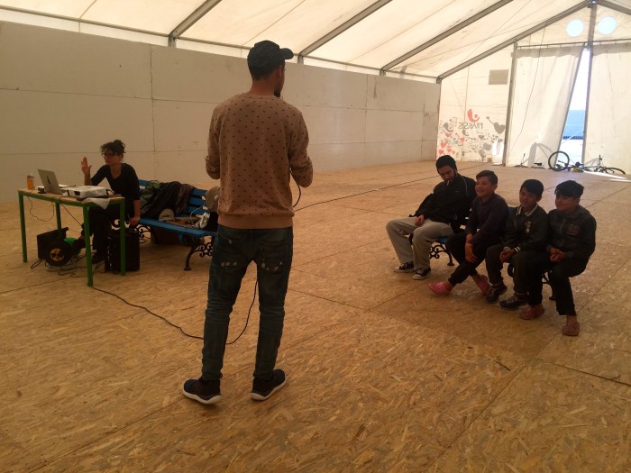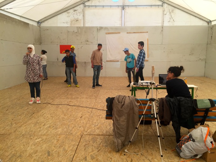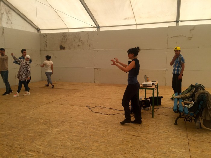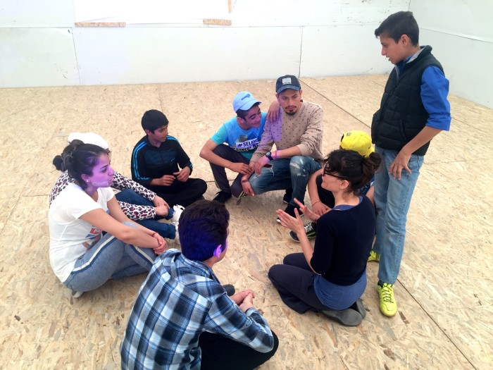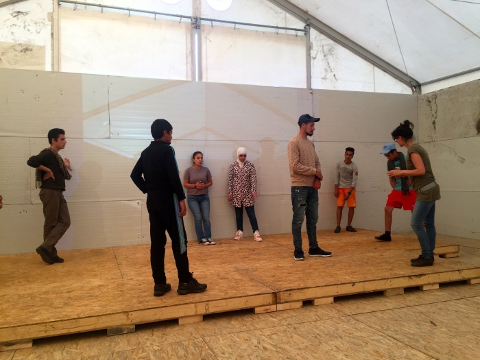 Ayer hicimos la primera sesión de teatro en Tesalónica con personas de diferentes campamentos. Asistieron unos 16 jóvenes y se lo pasaron genial. Los jóvenes de Nea Kavala estaban particularmente felices de salir del campamento, conocer a otra gente, jugar y crear juntos y dar después una vuelta por la ciudad. A pesar de llevar más de un año en el campamento, la mayoría de ellos no conocían la ciudad, a solo una hora del campamento, porque no tienen dinero para el transporte. Estaban muy excitados y agradecidos por la oportunidad.