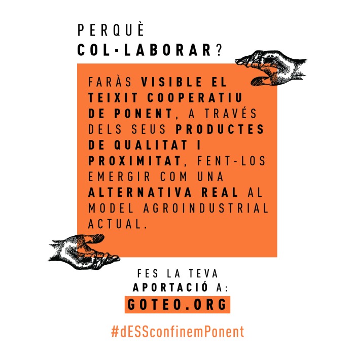 Nota: Inclou les despeses d'enviament a tot l'Estat. El repartiment a la ciutat de Lleida es farà a través de la cooperativa d'inserció social de missatgeria ecològica Serveis amb Cor. El repartiment a la resta del Principat es farà amb opcions de missatgeria cooperativa com Trèvol o Mensakas (a la ciutat de Barcelona). A la resta de l'Estat, es buscarà entre les opcions que estiguin disponibles.