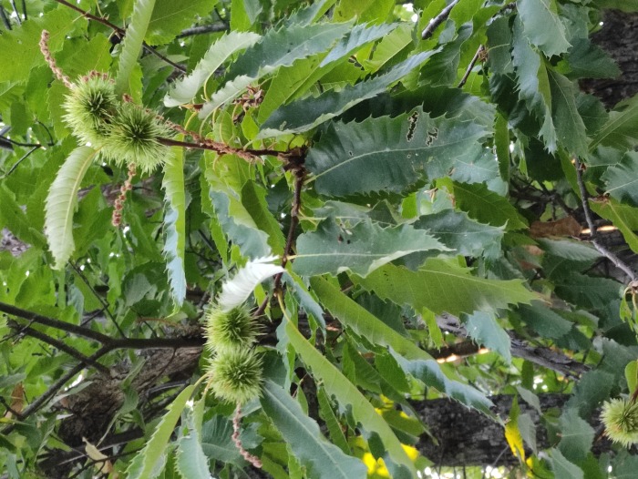 Desde hace un tiempo siento mucha admiración por estos árboles. Donde resido ahora, en la Sierra de Aracena hay muchos. Ahora soy consciente de cómo el hombre los "manipula" y poda para una mayor productividad evitando que crezcan en longitud. Es muy frecuente encontrar Castaños con un grueso tronco y ramas finas para que den más castañas. Los Castaños de Kalki han estado abandonados durante mucho tiempo. Son muy jóvenes y no han sido podados ni modificados. Son como son. En ellos, se puede apreciar la belleza de este árbol con su total y magnífica longitud.